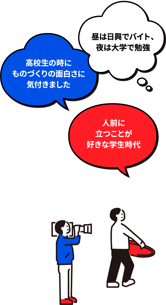 高校は特に深く考えず、友達が多く進学するという理由で工業高校に進みました。そこで“ものづくり”の面白さに気付き、漠然とですが『将来は人のために何かを作れるようになりたい』と思うようになりました。
